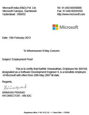 He is working in Microsoft India (R&D) Pvt. Ltd since July 2007.