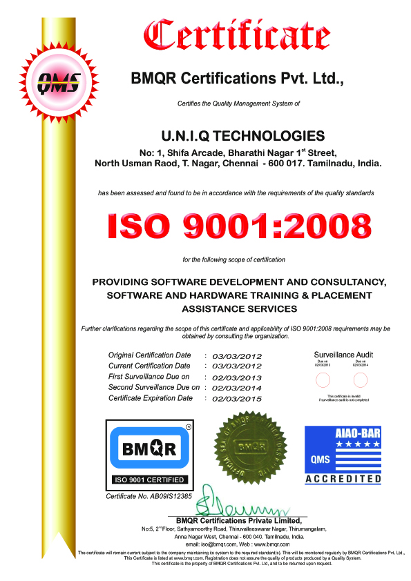 We, UNIQ Technologies (ISO 9001:2008 Certified), a Software & Development Company